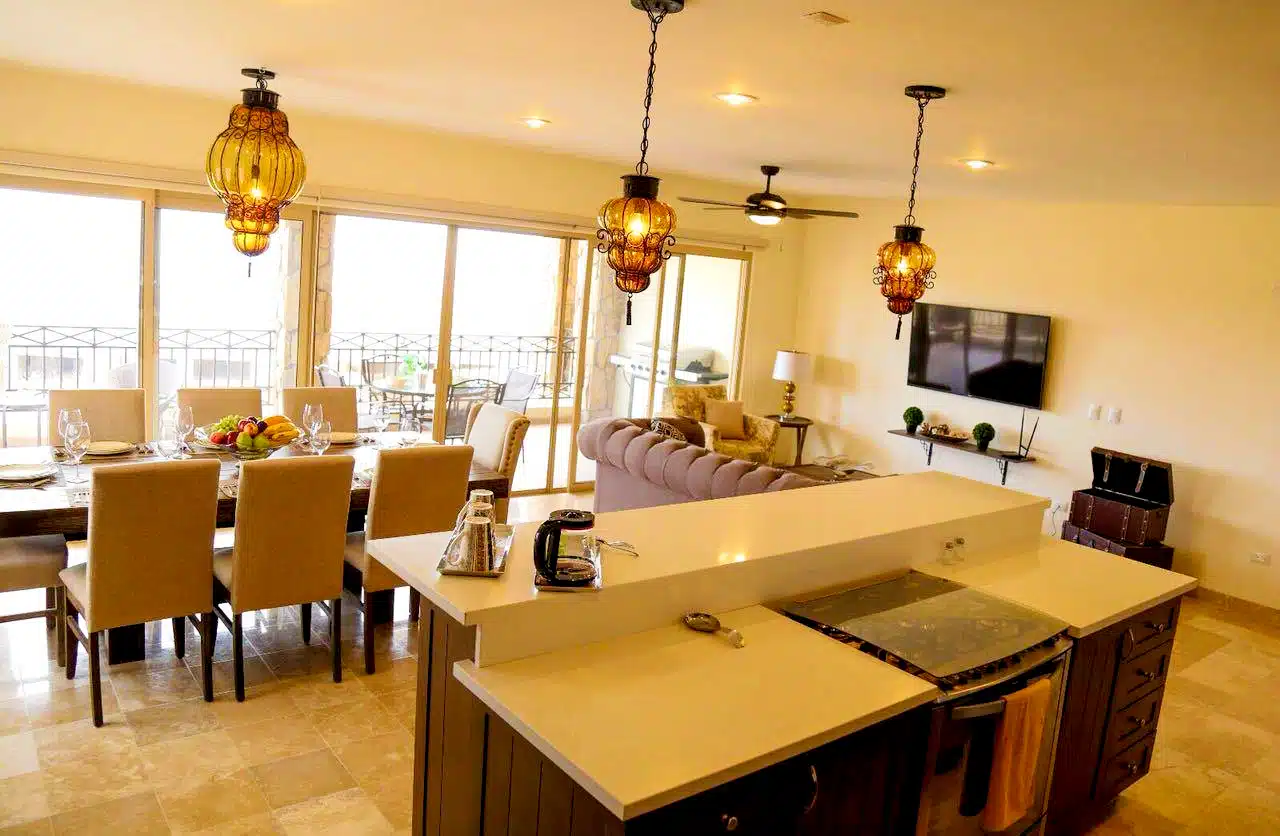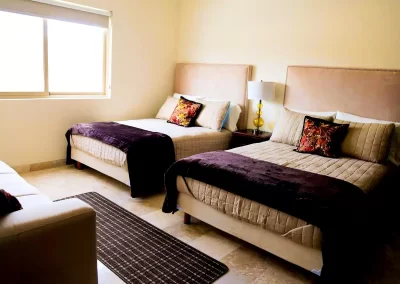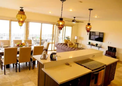Our gorgeous and spacious 1,600 sg ft 3 bedroom, 2 bath ocean view condo in the El Tezal neighborhood of Cabo San Lucas. This amazing, fully equipped, property boasts an open floor plan with all an glass wall leading to a large patio overlooking the Sea of Cortez and the Marina. Sit on the balcony with your coffee or margarita and watch the ships roll in. Large master, walk-in closet and on suite bathroom are just some of this gem’s highlights. Close to shopping, hiking trails, and some of the most amazing restaurants in Cabo. The gated community has a huge pool and plenty of parking. Just fifteen minutes away from some of Cabo’s stunning beaches, downtown and the marina area. Close enough to the action yet far enough for piece and quiet when you need it! Great for 1-3 couples and small families.